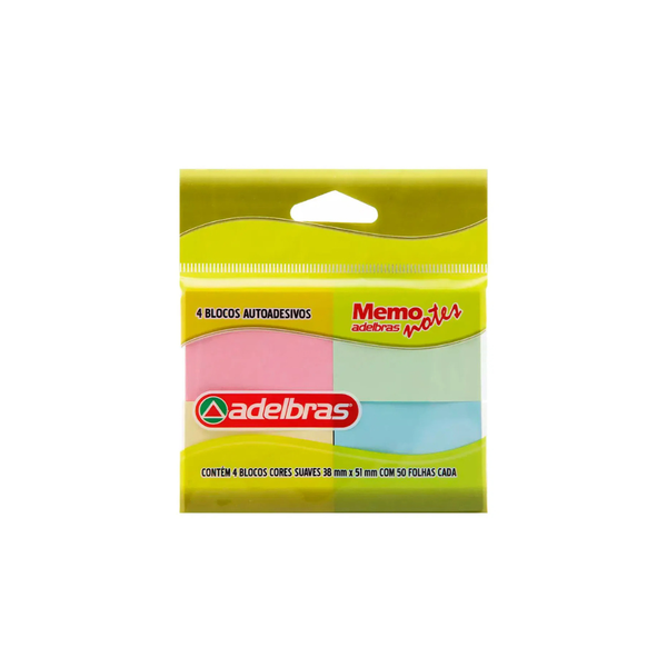 O Anote Cole Adelbras Cores Suaves 38mmx51mm 4 blocos com 50 Folhas e a solucao ideal para quem busca praticidade e organizacao com um toque de suavidade. Com adesivo de alta qualidade, essas folhas autoadesivas sao perfeitas para anotacoes rapidas, lembretes e para organizar suas tarefas de forma eficiente. As cores suaves proporcionam um destaque discreto, facilitando a visualizacao sem sobrecarregar o ambiente.