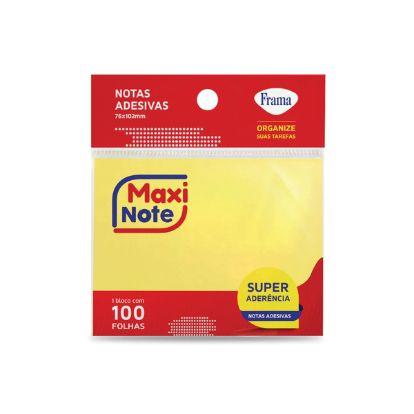 O Anote Cole Maxi Note Frama Amarelo 76mmx102mm com 100 folhas e ideal para quem busca praticidade e organizacao no dia a dia. Com adesivo de alta qualidade, essas folhas autoadesivas sao perfeitas para anotacoes rapidas, lembretes e para organizar documentos de forma eficiente. A cor amarela chama a atencao, tornando suas mensagens e ideias mais destacadas e faceis de visualizar.