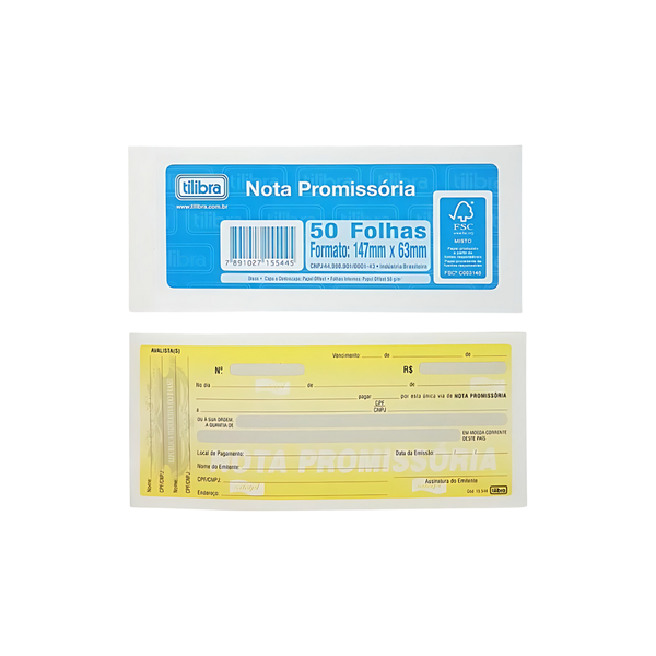 Bloco de Nota Promissoria Tilibra C/50 e ideal para quem precisa formalizar acordos de pagamento com praticidade e seguranca. Com 50 folhas, esse bloco oferece um formato padrao e organizado para a emissao de notas promissorias. Sua qualidade de impressao garante clareza nas informacoes, enquanto o design funcional facilita o preenchimento.