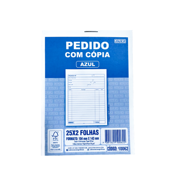 O Bloco de Pedido C/ Copia SD 10062 1/36 BCA 25x2 104mm x 143mm e uma excelente opcao para registrar pedidos de forma eficiente e organizada. Com 25 folhas e o formato de 104mm x 143mm, cada bloco contem uma via original e uma copia, facilitando a documentacao de pedidos e a comunicacao com os clientes.