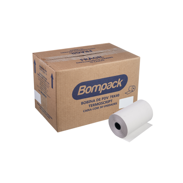 A Bobina PDV Bompack Termoscript. Com 79cm x 40m, oferece qualidade premium para imprimir recibos e comprovantes. Garanta transacoes rapidas e impressoes claras, elevando o profissionalismo do seu estabelecimento.