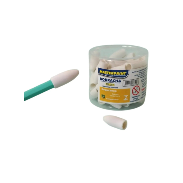 A Borracha Ponteira Branca Masterprint Unidade MP-207 e um produto ideal para quem busca precisao e eficiencia na hora de apagar. Com sua composicao de alta qualidade, ela proporciona um apagamento limpo e sem deixar residuos, sendo perfeita para uso em papel.