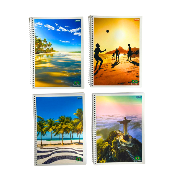 - 1 caderno grande, Jandaia, Brasilidade, 96 folhas, capa flexível, espiral.