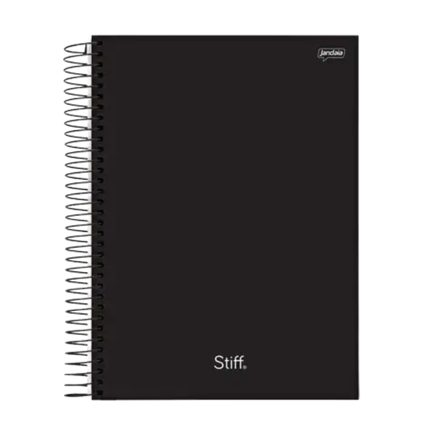 - 1 caderno pequeno, Jandaia, Stiff Slim, capa dura, 200 folhas, espiral, preto.