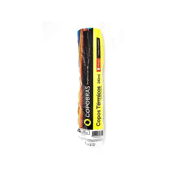 O copo termico Copobras e um pacote contendo 25 copos termicos, com capacidade de 240 ml cada. Esses copos sao ideais para manter bebidas quentes ou frias por mais tempo, oferecendo praticidade em cafes, chas, sucos e outras bebidas. Fabricados com materiais que garantem isolamento termico, eles sao perfeitos para uso em eventos, lanchonetes, cafeterias e ate mesmo para consumo diario. O design e a qualidade do material proporcionam resistencia e conforto, alem de serem descartaveis, garantindo conveniencia e higiene.