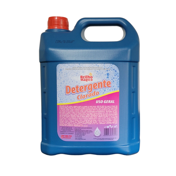 O Detergente Clorado Brilho Magico 5L e a solucao ideal para quem busca uma limpeza profunda e eficaz em diversas superficies. Sua formula clorada elimina sujeiras dificeis, manchas e germes, deixando as superficies limpas e desinfetadas, com um brilho impecavel.