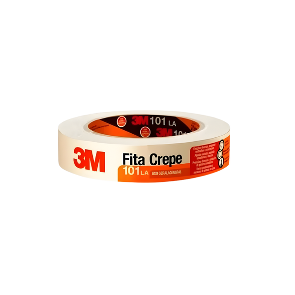 Fita Crepe 3M 101 LA 24mm x 50m, aderencia confiavel, facil de aplicar e remover, ideal para pinturas, marcacoes e usos gerais com acabamento limpo e profissional.