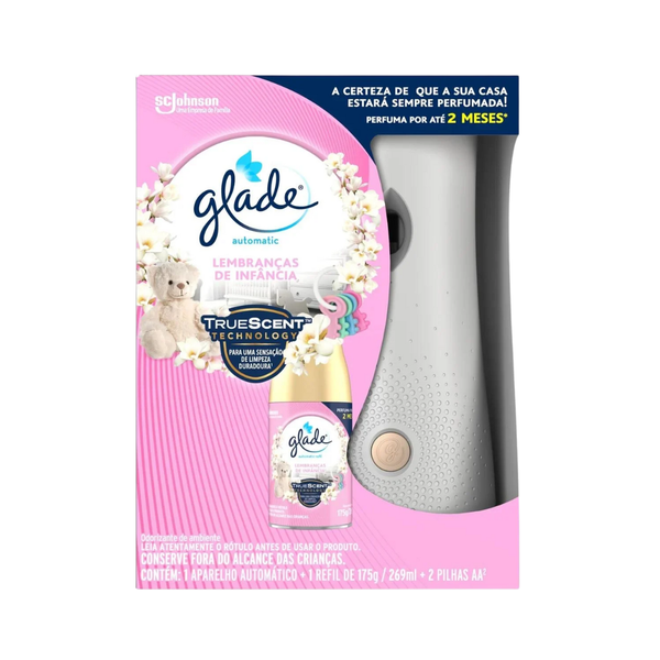 O Glade Automatic Aplicador, Refil e Pilha Lembrancas de Infancia 269ml e um kit completo que inclui o difusor automatico, um refil de 269ml com a fragrancia Lembrancas de Infancia e uma pilha para o funcionamento do aparelho. A fragrancia de Lembrancas de Infancia e suave e nostalgica, proporcionando um aroma acolhedor e reconfortante que cria uma atmosfera agradavel e perfumada de forma continua e automatica. Ideal para ambientes como salas, quartos e banheiros, esse kit oferece praticidade, mantendo o ambiente sempre fresco e perfumado sem a necessidade de intervencao manual. Perfeito para quem busca uma sensacao de conforto e frescor constante no lar.