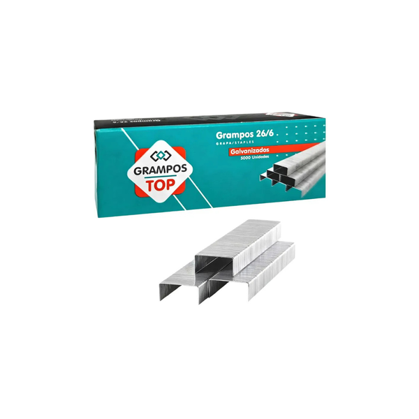 Grampo 26/6 para grampeadores com perfuracao de ate 20 folhas com 75 g/m geralmente utilizado em escritorios, possui pontas cortantes. Indicado para uso em escritorios, salas de aula, graficas e ate mesmo em ambientes domesticos.