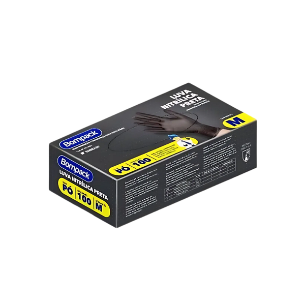 - 1 Caixa de Luva Nitrilica Bompack Preta S/Pó M C/100