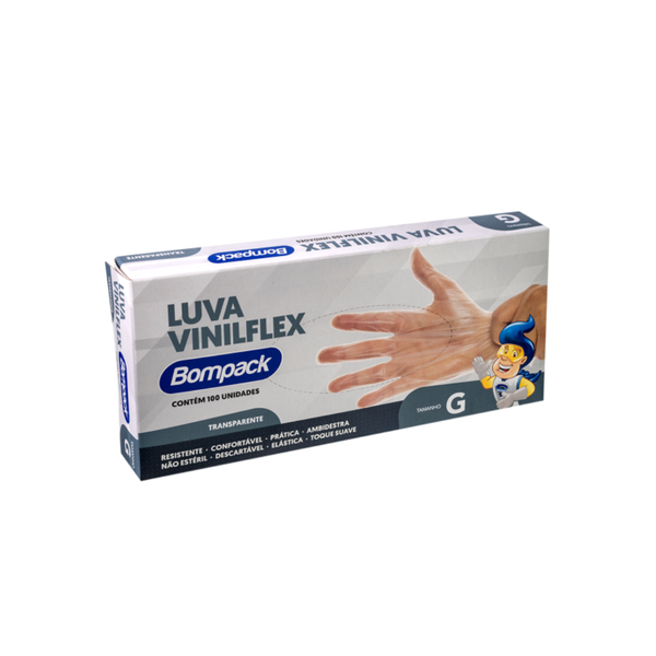 as Luvas Vinilflex da marca Bompack possuem mais resistencia e qualidade nas tarefas. Em embalagens com 100 unidades, sendo 50 pares, as luvas garantem praticidade para seu cliente na rotina das producoes culinarias, tendo ainda mais destreza e eficiencia para as funcoes ideais e ainda oferece ainda mais comodidade ao seu cliente.