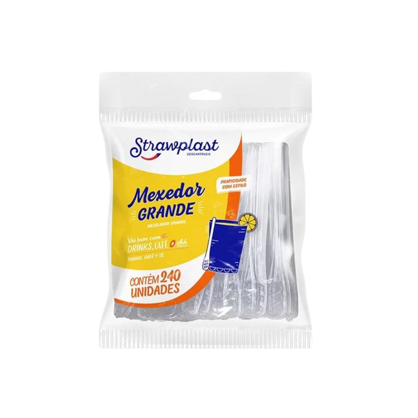 O Mexedor da marca Strawplast propoe misturar bebidas, otimizando o sabor com discricao e elegancia. Os mexedor produzidos em poliestireno (PS) sao indicados para todos os ambientes de confraternizacao, pois podem ser aplicados em diversos momentos como o de cafe, lanches, jantares, entre outros.