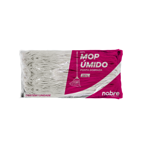 Refil para mop esfregao umido. Com 70% de algodao e 30% de poliester em sua composicao. Tem alto poder de absorcao e resistencia. Mop umido refil 290g. Com ponta dobrada com loop e cinta, proporcionando maior durabilidade.