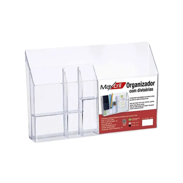 - 1 Organizador De Escritório Maxcril Cristal C/Divisórias