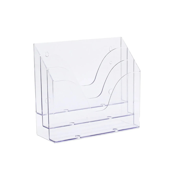 O Organizador Triplo Maxcril horizontal cristalPodendo ser utilizado tanto fixado na parede, como na horizontal ou vertical de alguma superficie, sao ideais para organizacao de documentos, pastas, etc. Pode ser usado tambem como suporte para monitor. Feito em poliestireno.