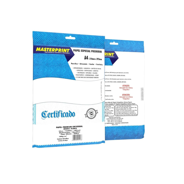 - 1 Pacote Papel Branco Diplomata/Liso/Offset 180g/M2 A4 C/50 Folhas Masterprint