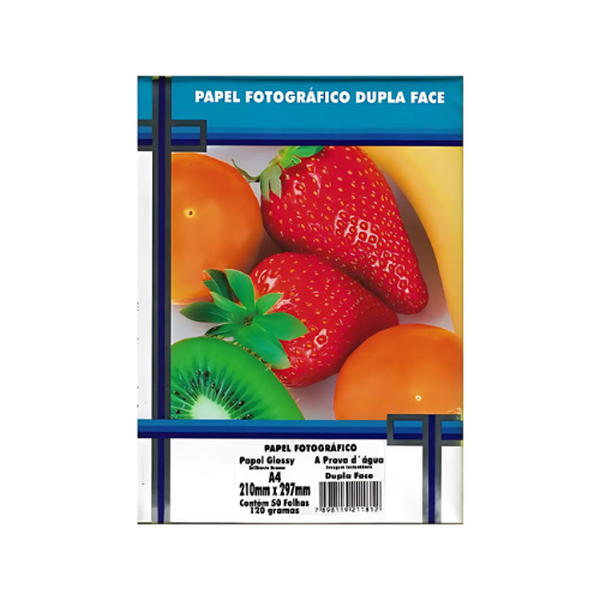 Papel Fotografico Dupla Face Masterprint A4 120 Gramas 50 Folhas. Papel Fotografico, Glossy, Branco, Alta resolucao, Para impressao a jato de tinta. Secagem instantanea, Impressao a prova d agua. Compativeis com as impressoras ink jet HP, EPSON, CANON, LEXMARK.
