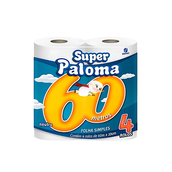 O Papel Higienico Paloma Neutro e uma embalagem contendo 4 rolos de papel higienico com 60 metros de comprimento cada. Esse produto e ideal para uso domestico e em estabelecimentos comerciais, oferecendo conforto e eficiencia. Com uma textura suave e resistente, o papel proporciona uma limpeza eficaz, alem de ser neutro, sem aditivos que possam causar irritacoes. A embalagem com 4 unidades e uma opcao pratica e economica, proporcionando bom rendimento para o dia a dia.