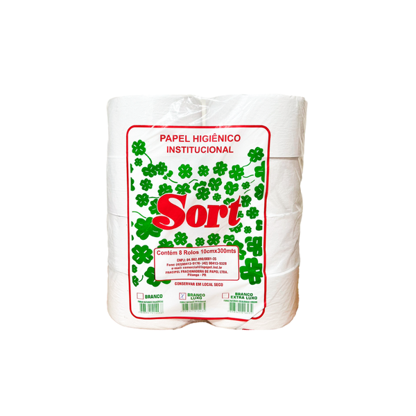 - 1 Pacote de Papel Higiênico Sort Rolão Branco Luxo 10X300 C/8 Rolos