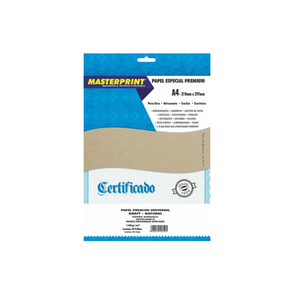 - 1 Pacote De Papel Natural Kraft 180g C/50 Folhas Masterprint