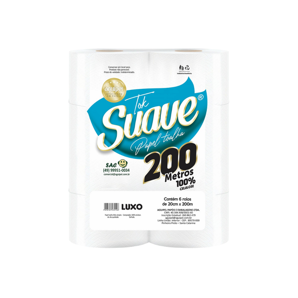 O Papel Toalha Bobina Tok Suave 100 por cento Celulose Luxo 6x200m 24g e um produto de alta qualidade, ideal para uso em ambientes comerciais, como restaurantes, hospitais e escritorios. Fabricado com 100 por cento celulose, oferece excelente absorcao, resistencia e maciez, garantindo um desempenho superior na limpeza e secagem de maos e superficies. Cada bobina possui 200 metros de comprimento, e a embalagem contem 6 bobinas, oferecendo uma grande quantidade de papel para uso prolongado. A linha Luxo destaca-se pela sua suavidade e eficiencia, sendo uma opcao premium para quem busca um produto de alta performance.