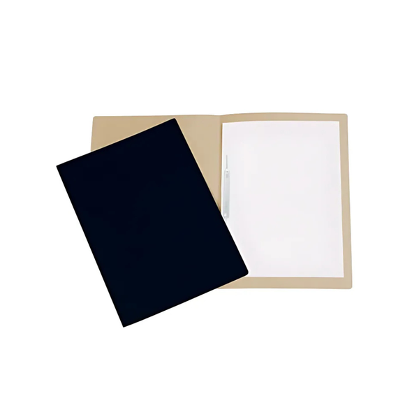Pasta de papel com grampo trilho, tambem conhecido como grampo Romeu e Julieta, tamanho oficio na cor preta. Ideal para guardar documentos diversos. E necessario utilizar perfurador duplo para arquivar os papeis. Organize seus trabalhos de forma pratica.