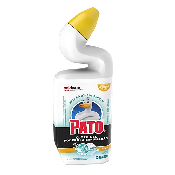O Pato Cloro Gel Espuma Citrus 500ml e um produto de limpeza desenvolvido para oferecer uma limpeza profunda e eficaz no vaso sanitario e outras superficies. Sua formula com cloro proporciona acao desinfetante, eliminando germes e bacterias, enquanto a espuma alcanca areas dificeis, garantindo uma higienizacao completa. O aroma citrus deixa o ambiente com um cheiro fresco e agradavel. Com 500ml, o produto e ideal para quem busca praticidade, eficiencia e um banheiro bem limpo e perfumado por mais tempo.