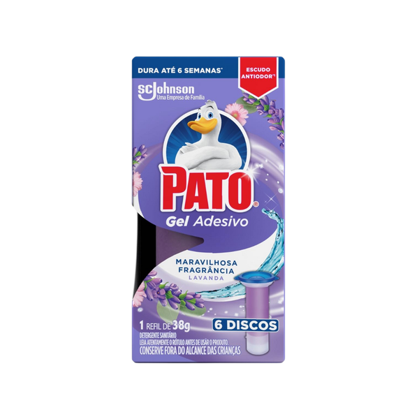 O Pato Gel Adesivo Refil Lavanda com 6 Discos e um produto de limpeza eficaz para vasos sanitarios, projetado para proporcionar frescor e higiene por mais tempo. Cada embalagem contem 6 discos adesivos com gel, que liberam um suave aroma de lavanda, garantindo um ambiente perfumado e livre de odores. Os discos sao de facil aplicacao, aderem bem ao vaso sanitario e ajudam a manter a limpeza continua, evitando o acumulo de sujeira. Ideal para quem busca praticidade e eficiencia no cuidado diario do banheiro, mantendo-o sempre limpo e com um perfume agradavel.