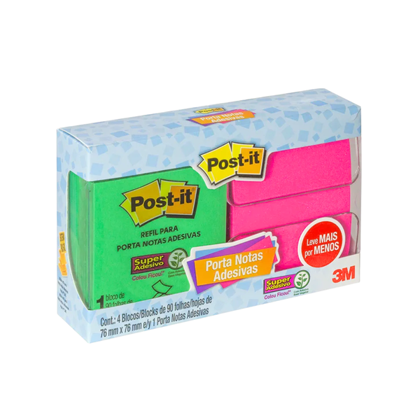 - 1 Post-it porta notas, dispenser 3M, porta adesivos, refis post-it, 4 refis 90 folhas.