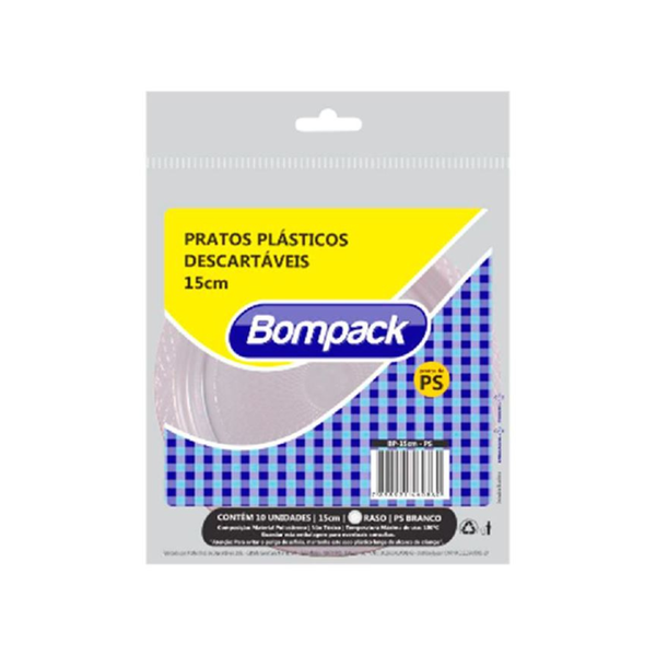 Os Pratos Descartaveis Bompack BP-15, em um conjunto com 10 unidades, oferecem uma solucao pratica e elegante para seu cliente servir refeicoes em eventos, festas e ocasioes especiais. Pertencentes a Bompack, uma marca Embrast, esses pratos destacam-se pelo design premium em diametro de 15cm. Com resistencia e durabilidade, os Pratos Descartaveis Bompack BP-15 sao ideais para servir diferentes tipos de alimentos. Garanta e ofereca sempre o melhor em bazar ao seu cliente, temos os melhores precos do mercado, solicite orcamento adicionando este item ao seu carrinho agora mesmo.