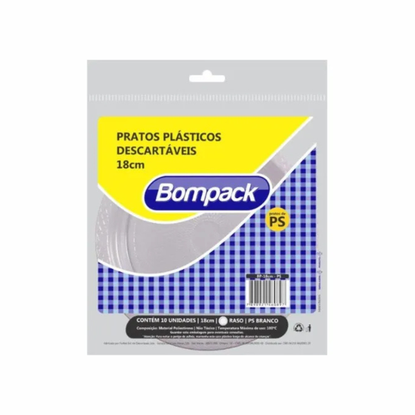 Os Pratos Descartaveis Bompack BP-18, em um conjunto com 10 unidades, oferecem uma solucao pratica e elegante para seu cliente servir refeicoes em eventos, festas e ocasioes especiais. Pertencentes a Bompack, uma marca Embrast, esses pratos destacam-se pelo design premium em diametro de 18cm. Com resistencia e durabilidade, os Pratos Descartaveis Bompack BP-18 sao ideais para servir diferentes tipos de alimentos. Garanta e ofereca sempre o melhor em bazar ao seu cliente, temos os melhores precos do mercado, solicite orcamento adicionando este item ao seu carrinho agora mesmo.
