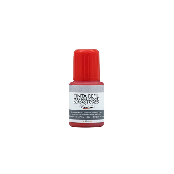 A Tinta para Marcador de Quadro Branco 20mL Vermelho BRW e ideal para recarregar marcadores usados e prolongar sua vida util por muito mais tempo.