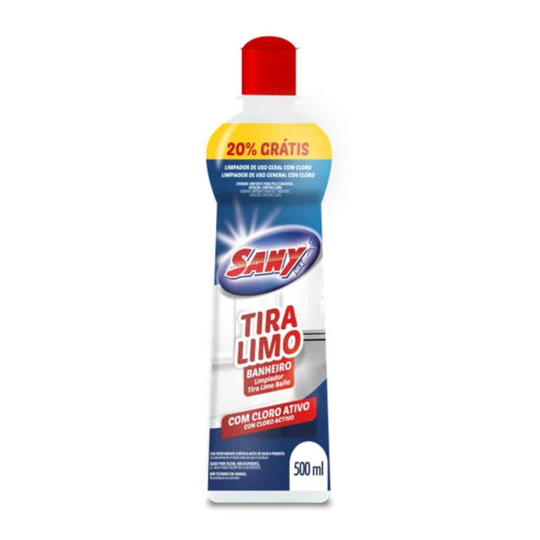 O Limpador Tira Limo com Cloro da SANY e uma poderosa solucao para remover limo e manchas de superficies em areas umidas, como banheiros e cozinhas.